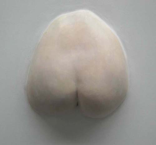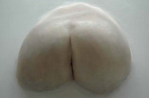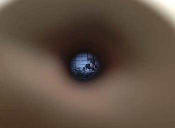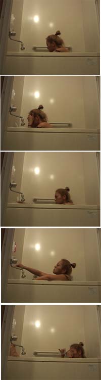 映像には入浴する女性がいる。20分の映像のうち5分間、湯船の縁に腰をかけ立体のお尻と同じアングルになる。