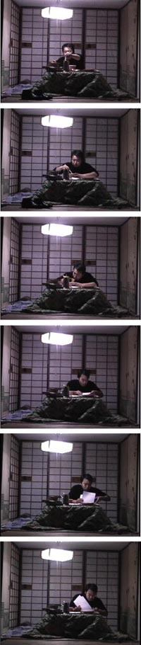 映像は約15分のリピート再生。狭い和室の部屋で”大”の男が住んでいる。