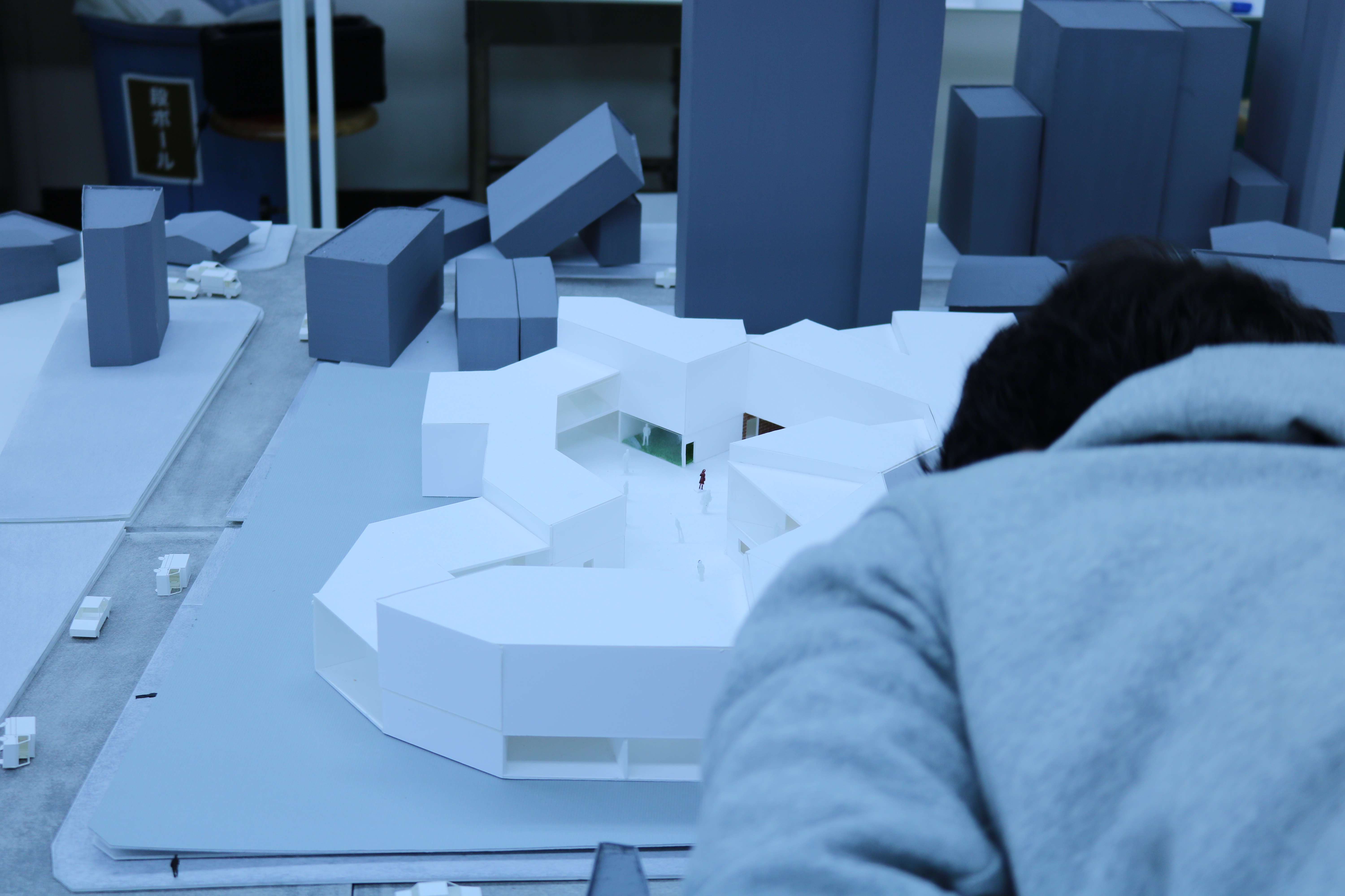 名古屋造形大学 建築・インテリアデザインコースでは、先に設計課題を終えた下級生たちが先輩のお手伝いをしています。全学年体制です。