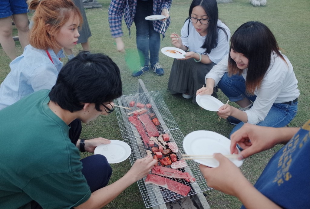 建築・インテリア・プロダクト・ジュエリーのコースの集まりを「空間・立体系」と言います。6月8日、梅雨に入る前の夕刻に系の交流会として、大学キャンパスの一角の芝生の広場で、BBQ大会を開きました。こんなことがあ出来るのも恵まれた広い環境があるからです。だんだん暗くなっていく中、肉が焼けてるかどうか確かめながら、ワイワイガヤガヤ楽しい時間でした。また、やろ!(文責:Nishikura)