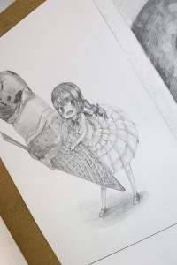 昼過ぎからB3画用紙に描き起こしていきます。