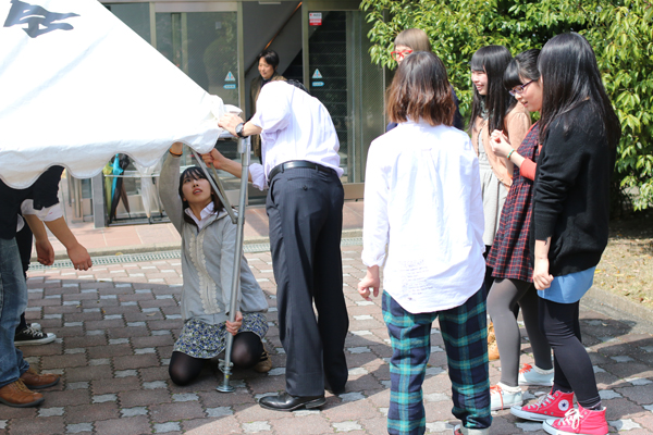 入学式に先立ち、在学生がおもてなしをするために野点の準備を10時から行いました。