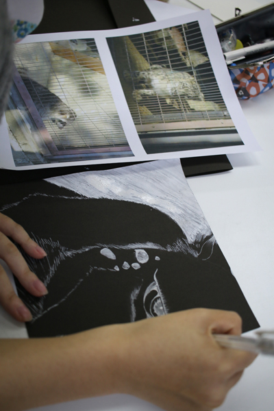 参加してくれたのは1年生から4年生までの有志メンバーで、リーダーは3年生の池田さんでした。ポストカードやグッズ制作など1年生ではまだ分からないパソコンソフトの使い方を、先輩が分かりやすく指導してくれたおかげで、充実した展覧会となり、グループ展部門にて展示賞1位に選ばれる事ができました。
