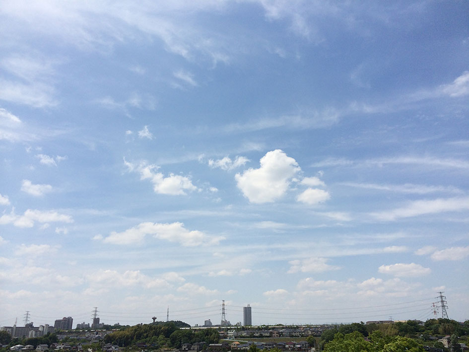 空は晴れ、白い雲が飛ぶ清々しい天気。