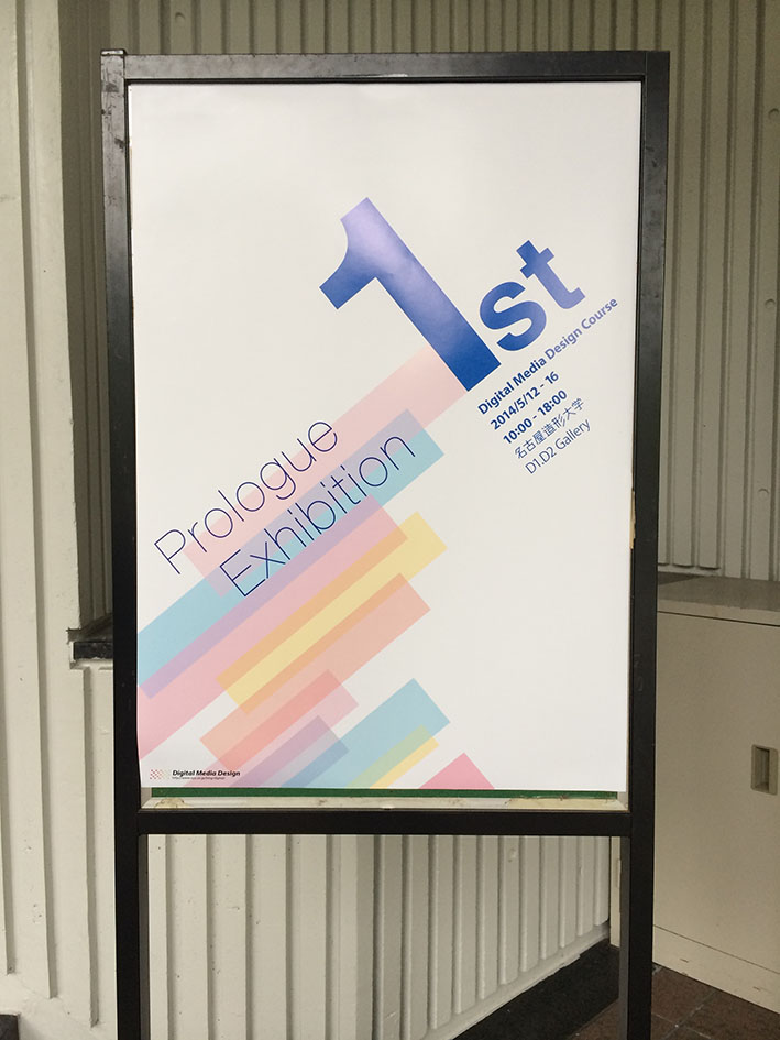 学内Dギャラリーではデジタルメディアデザインコースの学生作品展「プロローグ展」が開催されている。