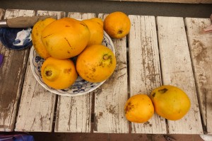 さて、庭の花梨の実が成った。しかし、既に花梨酒はストックが十分あり、今後100年くらい咳止めは要らないくらいだ。せっかく成ってくれたのにもったいないが、良い香りを部屋に放ってもらおうかな…