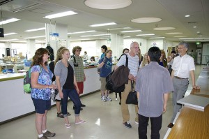 今日はアメリカのボイシー州立大学の皆さんが来校。学内での展示作業に入った。