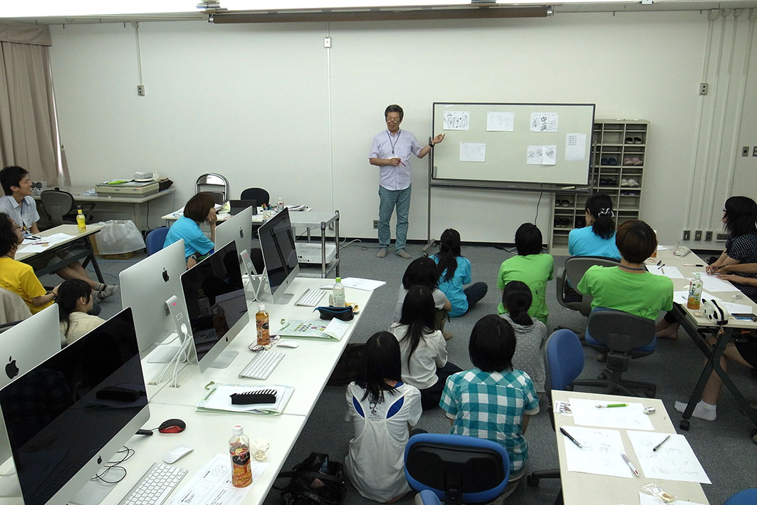 アニメーションコースでは「実践アニメ道場」と銘打った講義が進行中。道場破りが大勢詰めかけている様子。