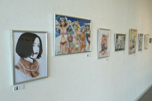 2、3、4年生に院生、それから講師の皆さんのイラスト作品が展示されている。