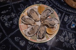 今日の仕事は諦めて、夜は牡蛎で一杯。