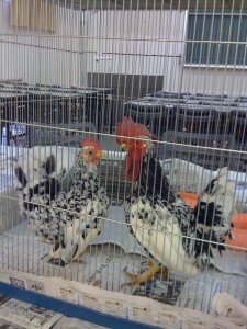 クロッキー体験でモデルになる碁石チャボのつがいも来ましたよ。