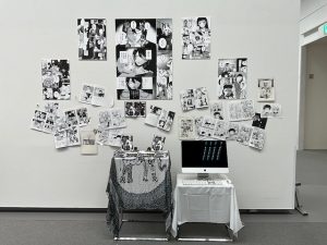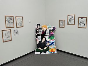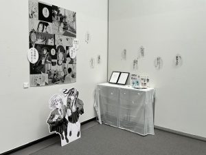 マンガ分野が展示している映像文学領域は愛知県美術館8Fにあります。展示会場にはソファーもありますので学生のマンガ作品をゆっくり楽しんでいただければと思います。よろしくお願いいたします!