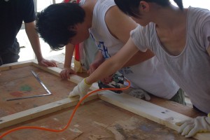 作る事となると皆さん張り切ってますね、急ピッチで昨日加工された木材が組み上がります。