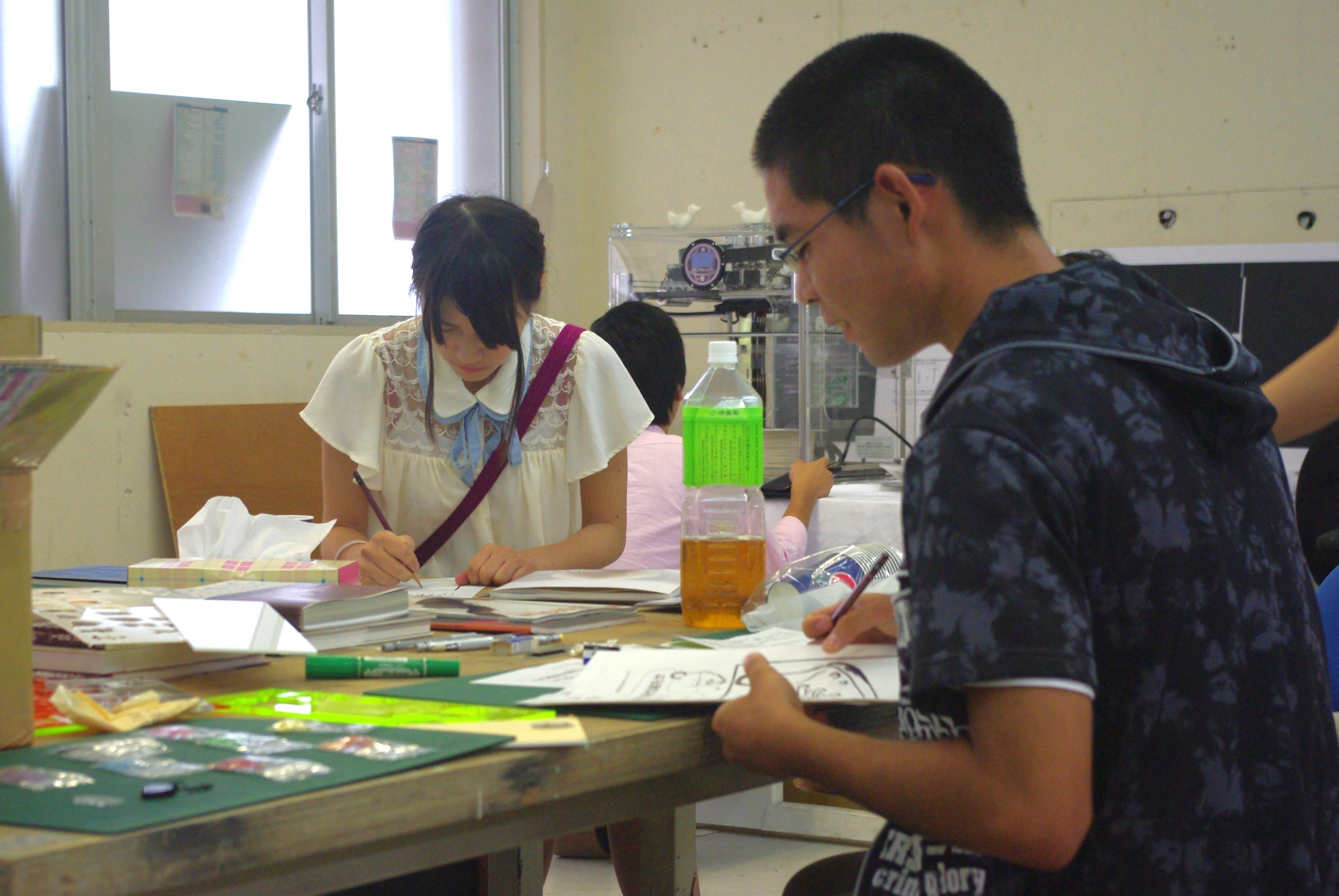 オープンキャンパスでは過去入試合格者のデッサンや課題スケッチなどが多数展示しております、自分のスケッチに不安を覚えたらまずは教員に見てもらいましょう。