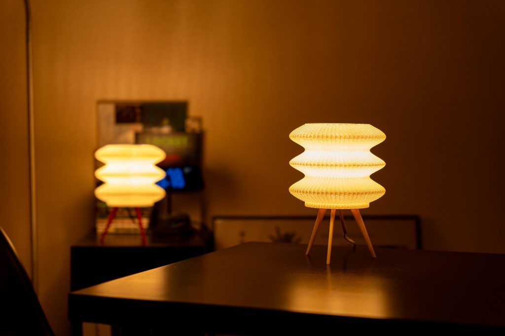 今から振り返ると「個人の暮らしに寄り添うパーソナルプロダクトの提案」というテーマでの研究は、3年生の前期からスタートしていた。彼の中には「作り手」と「使い手」を繋ぐ商品の価値として、「使い手」が関与する余白の存在があり、商品をよりパーソナライズすることに適している3Dプリンターの側面をクロースアップする試みからスタートした。ひとつはパラメトリックなプロセスを導入することで、カスタマイズできる要素を整理し、分かりやすく提示すること、もうひとつは3Dプリンターが抱えるネガティブな要素やイメージを製品レベルに引き上げる試み…更には、3Dプリンターならではの魅力を引き出し、独自の付加価値を見出すこと…に集約することができると思われる。1つ目のパラメトリックなものづくりについては、3年生の前期にスマホスピーカーをカスタマイズするアイデアを具現化し、少量生産に向く3Dプリンターの可能性を示してくれた。当初、使い手となるカスタマーにとっての「ジャストな価値」を実現することで満足度やサステイナブルな価値を生み出すことに軸足があった気がするが、研究を進めるうちに3Dプリンターが備える、或いは潜在する切り口によって、新たな表現ツールとしての可能性を大いに秘めていることを証明してくれた。それらはいずれも従来のインジェクション成形などでは型抜き上で不可能であったり、複雑な傾斜コアやひとつの成形機に複数の金型を用いるような高額な型設計が必要となる成形を一発で出力するもので、オリジナルのアイデア自体は既存のものもあるが、それらが意匠性を高める表現手法にならないかという視点で捉えることができたのは、デザイナーのアドバンテージだったと思う。具体的には、3軸同時制御、蛇行パスによる編み形状、同じノズルでの出力量制御、加熱による二次加工、異素材とのインサート成形、表面をシボ処理したように加工するファジースキン、インフィルパターンの活用、太ノズルによる表現幅の拡張など、従来の3Dプリンターのイメージに縛られていた私にはどれも興味深く素材として面白い手法だった。特にFFF式3Dプリンターが宿命的に持つ積層痕やプラスチック感などのチープなイメージに対して、蛇行パスによる編み構造や太ノズルにより積層痕自体をテクスチャに見せる視点は合理的で、そのバリエーションなども含めると無限の表現手法を手に入れたかにも見えた。そんな中で苦労したのは、対象とするプロダクトの選定が肝となる点で、これらを最大限に活かしながらリアリティのあるアイテムを探し当てることに多くの時間を費やすことになる。デザインの仕事をしていると、工法からインスパイアされることもあるが、そのテクスチャが持つ…通気性や透過性、グリップ感などの機能が生み出す可能性を収束させていくことが難しかった。彼の机の上には毎週異なる試作品が溢れ、寡黙な彼の静かなチャレンジと試行錯誤が伝わってきた。