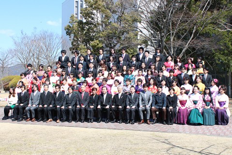 厳かな雰囲気のなか無事、卒業証書授与・学位認定式を終え記念写真の撮影へ。