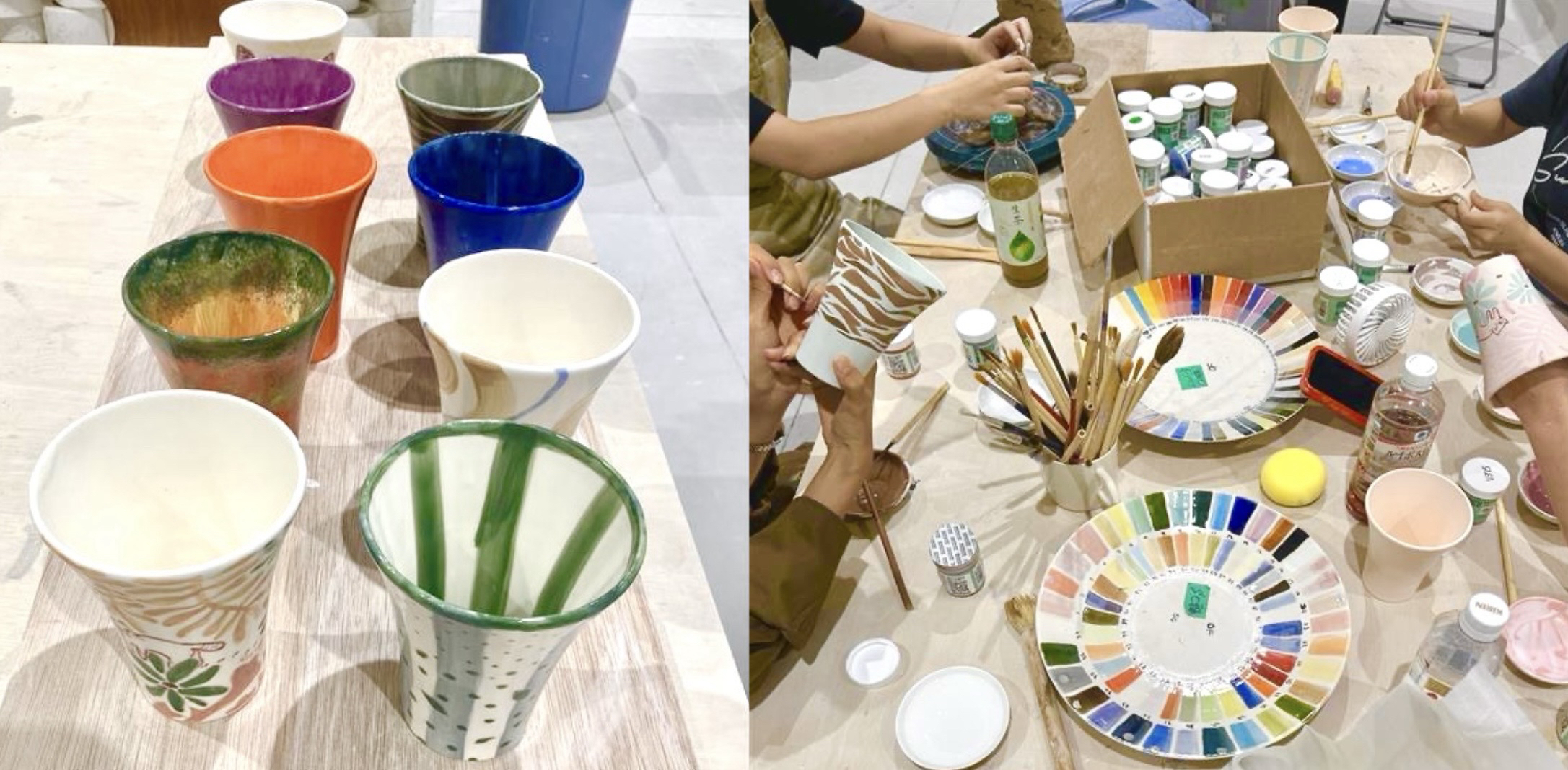 陶芸室で自由に作品作りをしています。器、置物、アクセサリーなど、なんでもOK!