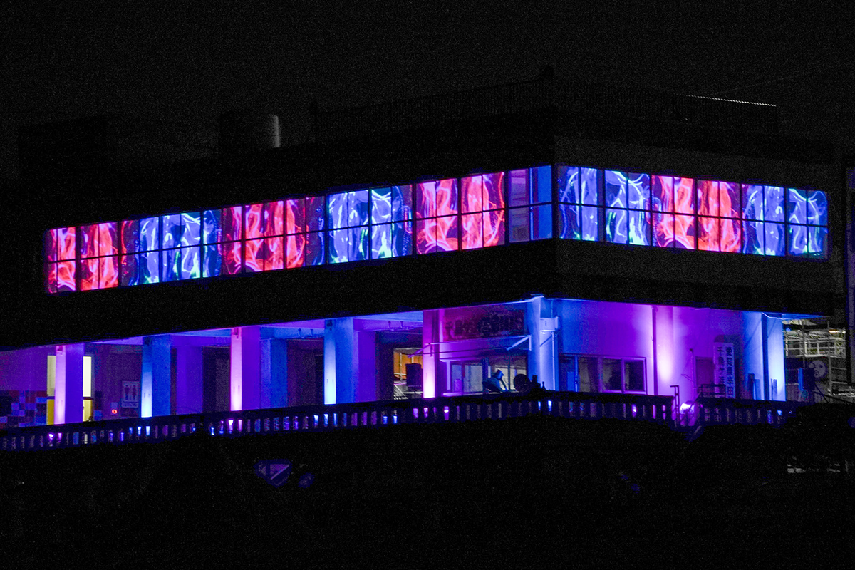 建物や立体物に映像を投影し、空間と映像を融合させるプロジェクションマッピングの実践的な取り組みとして、企業や団体・イベントと連携した制作を行っています。多様な表現手法を用いたプロジェクションマッピング演出に取り組んでいます。