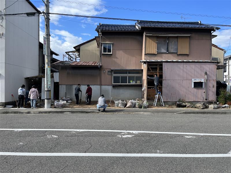 さらに2024年10月からは、商店街の組合員である合同会社大正と連携し、「地域活動拠点スタートアップ計画」が始まりました。柳原通商店街の空き店舗を活用し、学生と地域の方々が協働して活動できる拠点づくりを進めています。プロジェクトの第一歩として学生が内装デザインの提案と施工を行い、それと並行して、学生と地域住民を対象とした拠点の活用方法を考えるワークショップの企画・運営にも取り組みました。これらの活動を経て拠点の名称は「KIKKAKE」に決まり、今後もこの拠点を軸に多様な活動を展開しながら、地域とのつながりをさらに広げていきます。