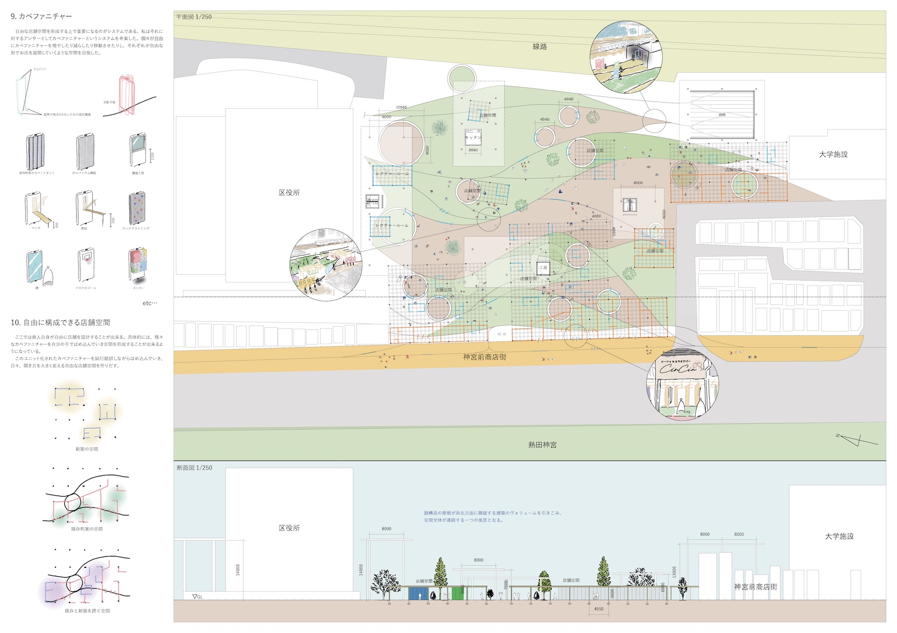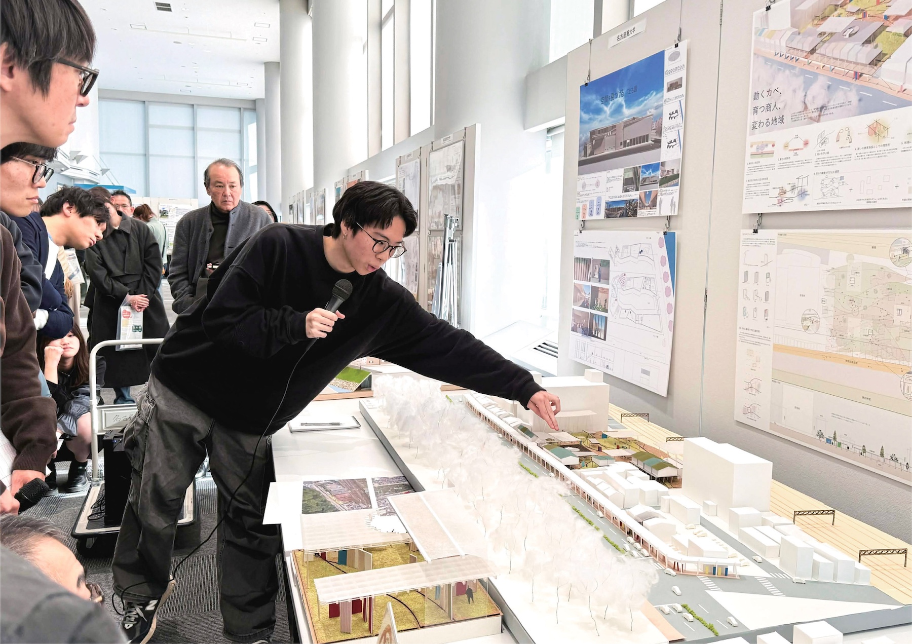 建築・まちづくりを志す学生が考える将来の久屋大通南エリアの提案に関する作品(設計競技作品)や大学での課題作品の展示を行います。