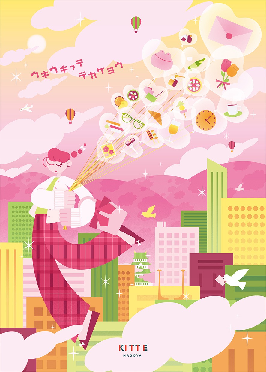 このプロジェクトは、様々なイラストレーターをバトンリレーのようにつなぎ、KITTE名古屋のシーズンビジュアル制作を行うプロジェクトです。春シーズンのビジュアル制作プロジェクトとして、本学からは26名の学生が参加し、最優秀作品1名と入賞作品3名が選出されました。