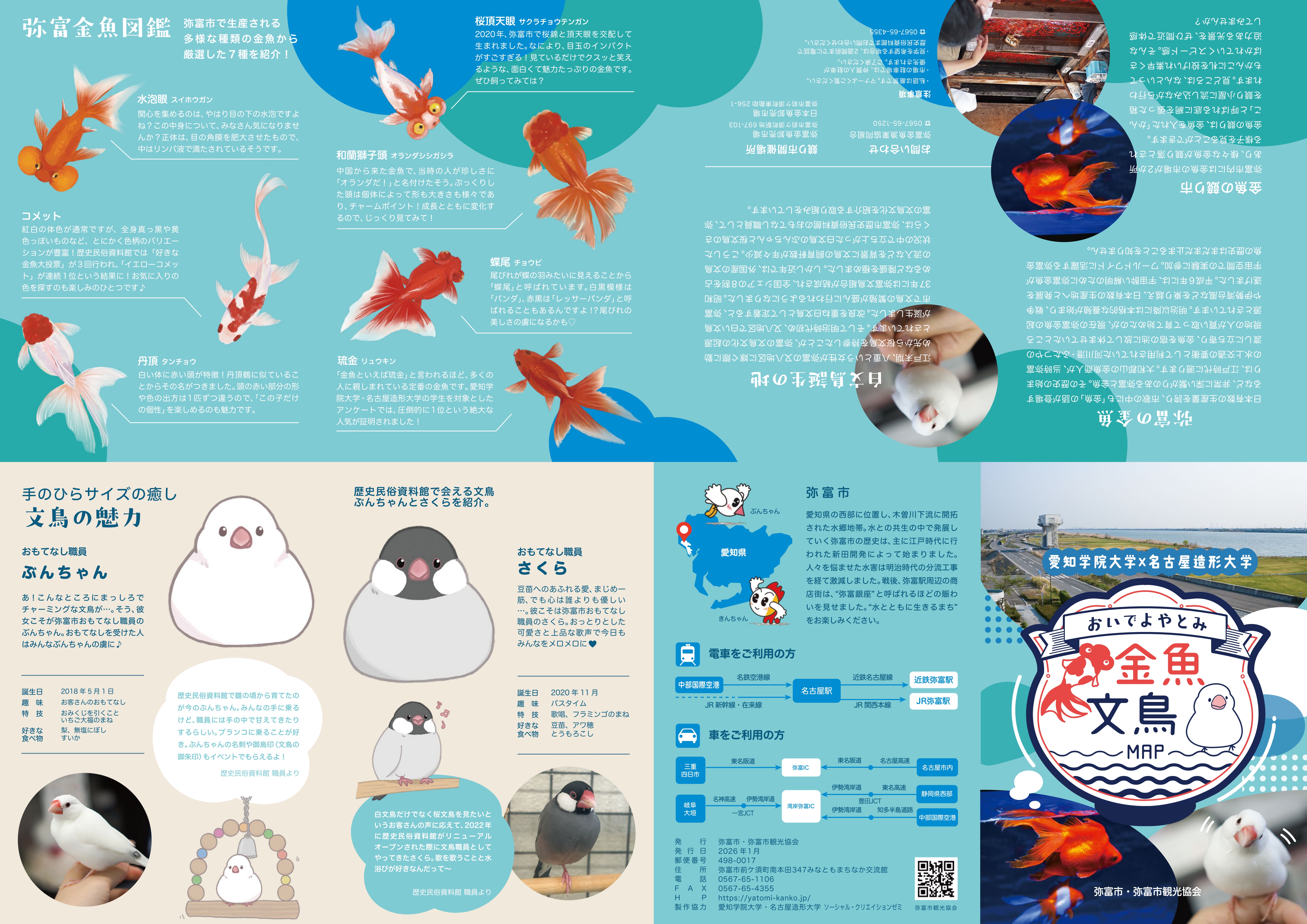 弥富市×愛知学院大学×名古屋造形大学の三者連携で、弥富市観光新マップを制作しました。