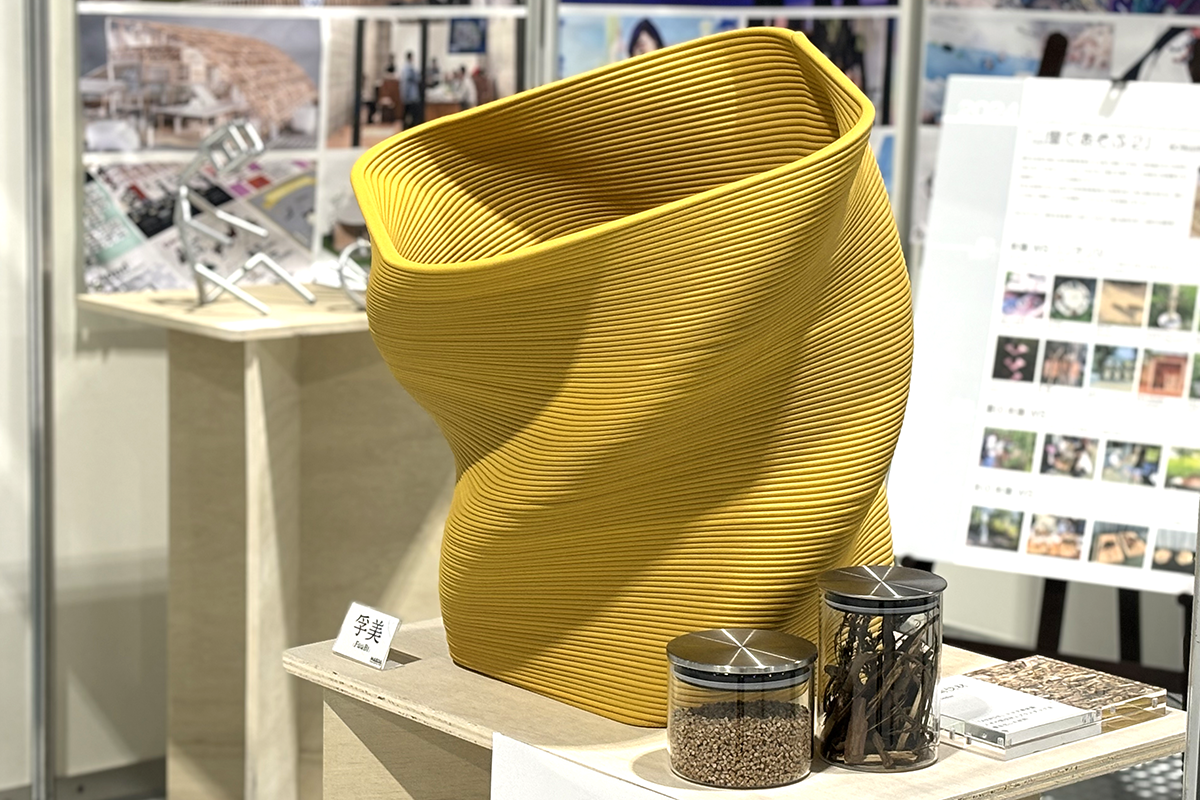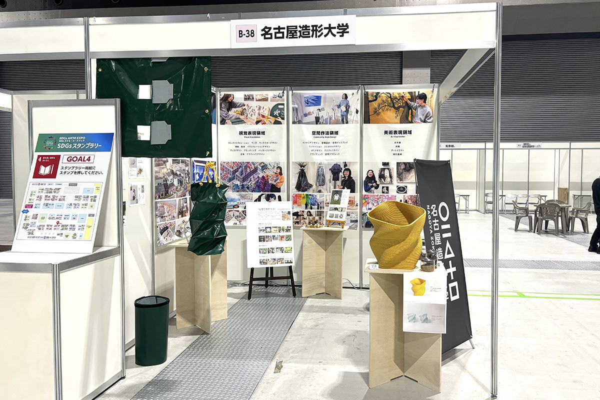 SDGsがテーマということで、本学からは過去に産学連携で取り組んだアップサイクルや地球環境に関わる作品を展示いたしました!