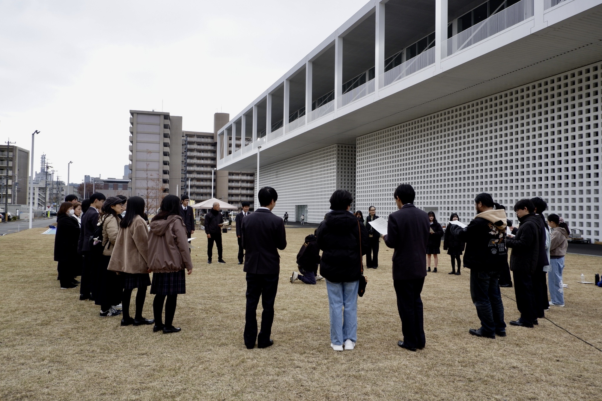 当日、名古屋造形大学では、室内で行う活動をまちの中へと持ち出す考え方を《アウトドアリビング》と位置づけ、芝生の上にリビングのような空間をつくることで、まちを自由に楽しむ実践と提案を行いました。当日は晴天にも恵まれ、駅へ向かう人や帰路につく人など、多くの方が足を止め、関心を寄せてくださいました。ご参加・ご協力いただいた皆さまをはじめ、足を止めてくださった地域の皆さまに、心より感謝申し上げます。