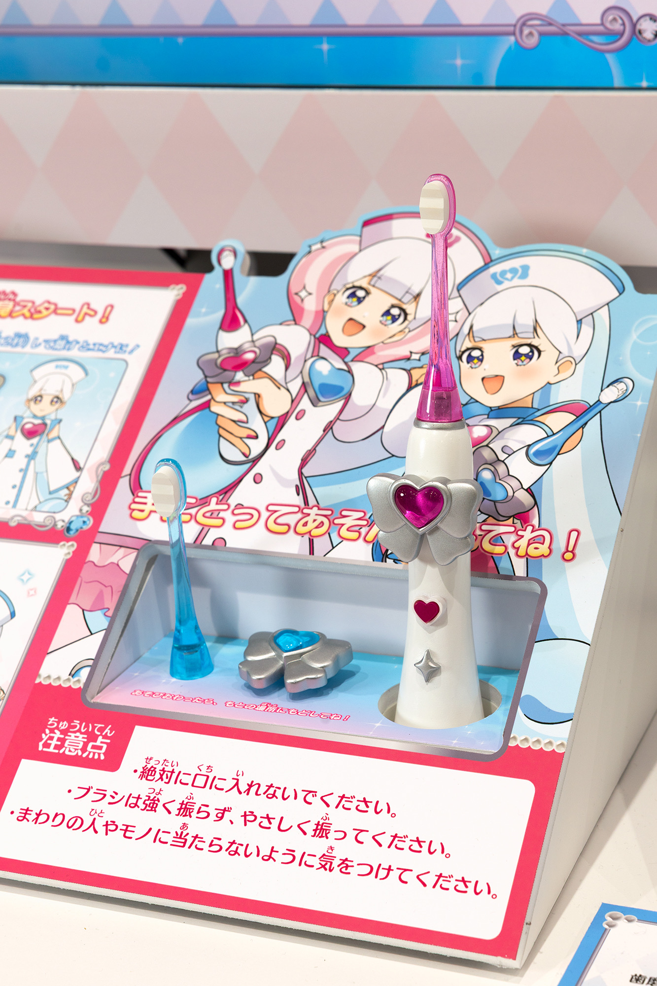 キャラクターと同じアイテムで歯磨きが出来ることが「やってみたい!」につながると考え、作中アイテムを歯ブラシの玩具として再現しました。また、玩具にm5stickを内臓し、玩具を振る(歯磨きの動作をする)ことでキャラクターが変身するアニメーションが最後まで再生される仕組みを取り入れました。歯磨きを「変身なりきり遊び」につなげることで、歯磨きへのハードルを下げ、前向きに取り組める体験を目指しました。