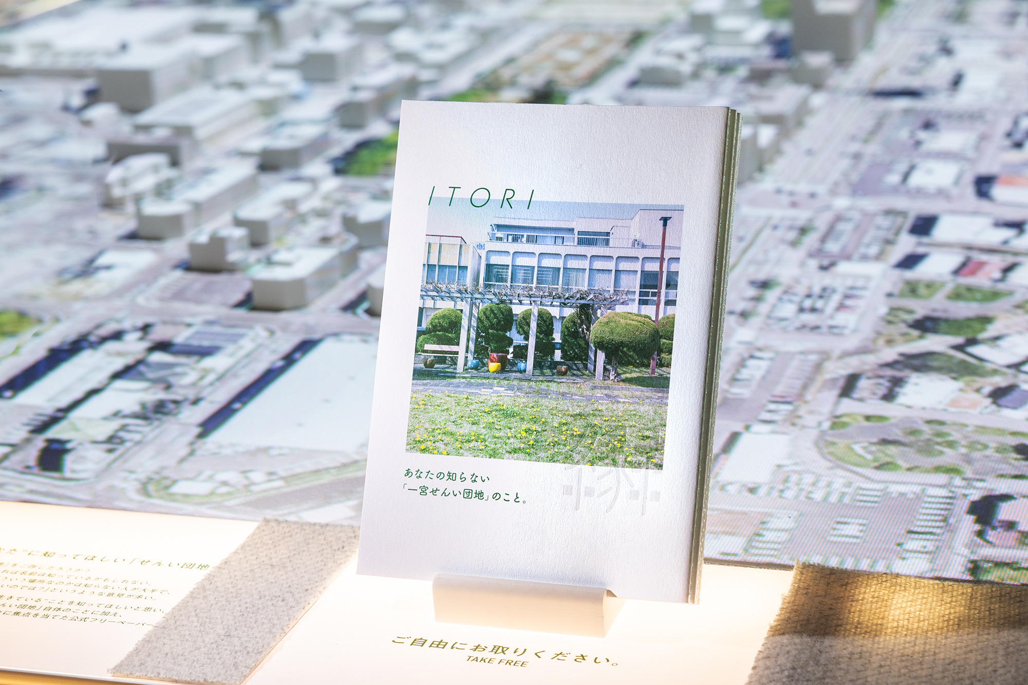 衰退の印象が先行する地域に対し、彼は外部から価値を与える立場ではなく、一人の地元出身者として足を運び、対話を重ねながら関係を築き直した。フリーペーパー『ITORI』の発行、広報部の設立、マルシェ企画・運営、模型と映像展示へと展開する一連の活動は、まちの魅力を可視化するだけでなく、人と人との関係性を編み直す実践でもあった。